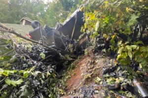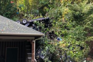 Around 10:15am Thursday morning, Yancey County 911 dispatched multiple departments to a report of a motor vehicle accident on Mountain Air, involving a truck and trailer that went over an embankment and struck a building.