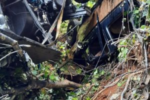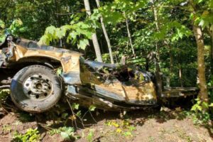 One man was trapped in the wreckage. Before emergency crews could attempt to extricate their patient the wreckage had to be stabilized with help from Decolas towing service. Due to the heavily damaged truck, spilled sealant and position of the truck on the bank removing the injured man took around an hour.