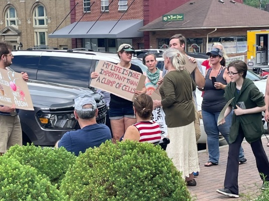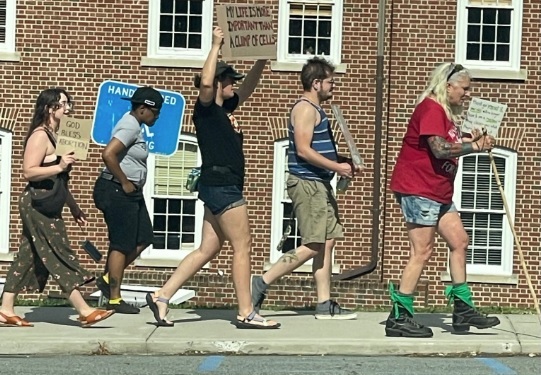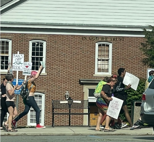 Various abortion protests have continued across the country since the Supreme Court decision to suspend Roe vs Wade and turn the decision making back over to individual states. A small group of approximately 20 pro abortion activists came to Burnsville on July 4th and marched through the downtown area where people were gathering for the July 4th activities. They also marched by the Yancey County courthouse carrying signs that read “Abortion is Healthcare”, “Bans off our bodies” and “My life is more important than a clump of cells”. It was a mostly peaceful protest but at least one point they did loudly chant a slogan about Roe v Wade. They also appeared to engage in a discussion with a few apparently anti-abortion people. The planned event was posted on social media and most of the protestors appeared to be from out of town.