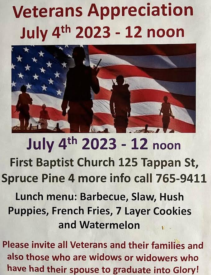 Veterans Appreciation July 4th @ Noon at First Baptist Spruce Pine