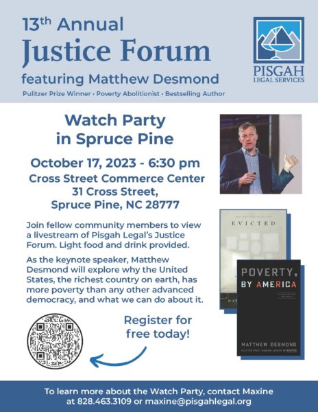 This will be Pisgah’s 13th annual Justice Forum featuring Matthew Desmond, Pulitzer Prize Winner-Poverty Abolitionist-Bestselling Author