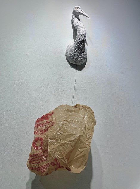 A new exhibition opened in the upstairs Owen Gallery at Toe River Arts in Spruce Pine on September 29, 2023, and will run through November 11, 2023. The exhibition is titled Compliant, New Work by Melisa Cadell. There will be a reception for the exhibition on Friday, November 10, 5:30-7:30, the same night as the Studio Tour reception. Melisa’s says of her exhibition “Viewers are invited to enter a sensory experience through a landscape composed of discarded material and ceramic sculpture. Compliant is a play on the paradoxical dance between the finite natural world and those things which are infinitely detrimental to it. Ultimately, it is a reflection that is meant to be both hauntingly beautiful and unsettling”.