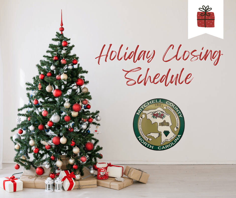 Mitchell County Government announces the following closing schedule for the Christmas and New Year’s holidays.