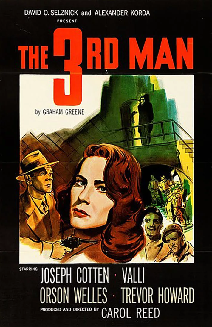 The Third Man is a 1949 film noir directed by Carol Reed, written by Graham Greene, and starring Joseph Cotten, Alida Valli, Orson Welles and Trevor Howard, set in post-war Vienna. The film centers on American Holly Martins (Cotten) who arrives in the city to accept a job with his friend Harry Lime (Welles), only to learn that Lime has died. Martins decides to stay in Vienna and investigate his death.