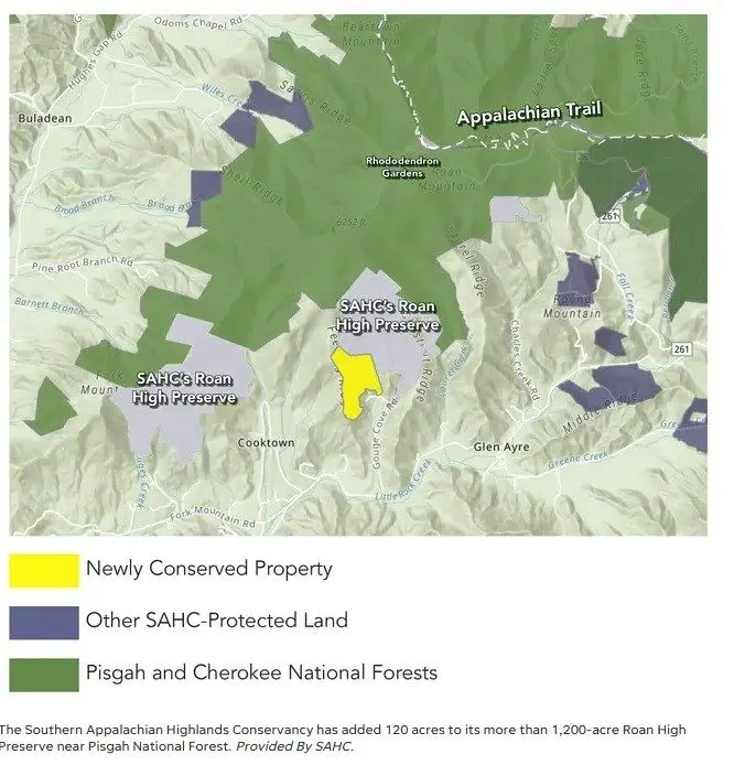 The Southern Appalachian Highlands Conservancy has added 120 acres to the Roan High Preserve in Mitchell County, expanding protected land that borders Pisgah National Forest. The new property includes headwater tributaries and parts of Gouges Creek, providing clean water and trout habitat in the Nolichucky River watershed. Officials say the acquisition also strengthens wildlife corridors, protects high-elevation habitats for rare and endemic species, and preserves the scenic views that draw hikers and outdoor enthusiasts to the area. The Roan High Preserve now totals more than 1,200 acres of conserved land in the heart of the Roan Highlands, stretching from the crest of Roan High Knob to the foot of the Roan Massif. Conservancy spokespersons note the land will be permanently managed as a nature preserve, ensuring it won’t be developed and supporting decades of conservation work in this iconic mountain region.