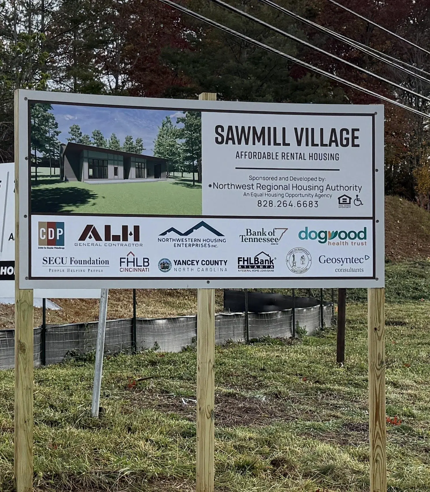 Northwestern Housing Enterprises is developing Sawmill Village with other funding coming in part from commercial and state advantaged loans, a Yancey County infrastructure grant, and a major grant from Dogwood Health Trust.