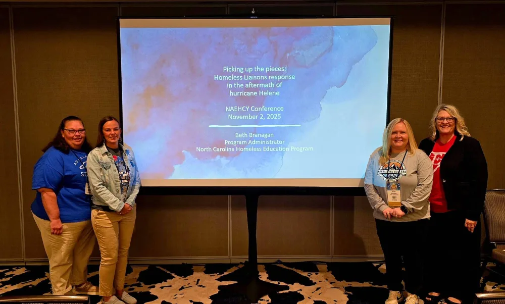 Four western North Carolina school district leaders recently shared their experiences responding to the devastating impacts of Hurricane Helene at the National Association for the Education of Homeless Children and Youth (NAEHCY) Conference in Dallas, Texas, on November 2.