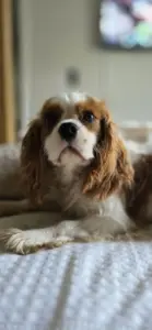 For Sale: 1 year old King Charles Cavalier male: must be only dog. $100 rehoming fee…call 828-284-9878