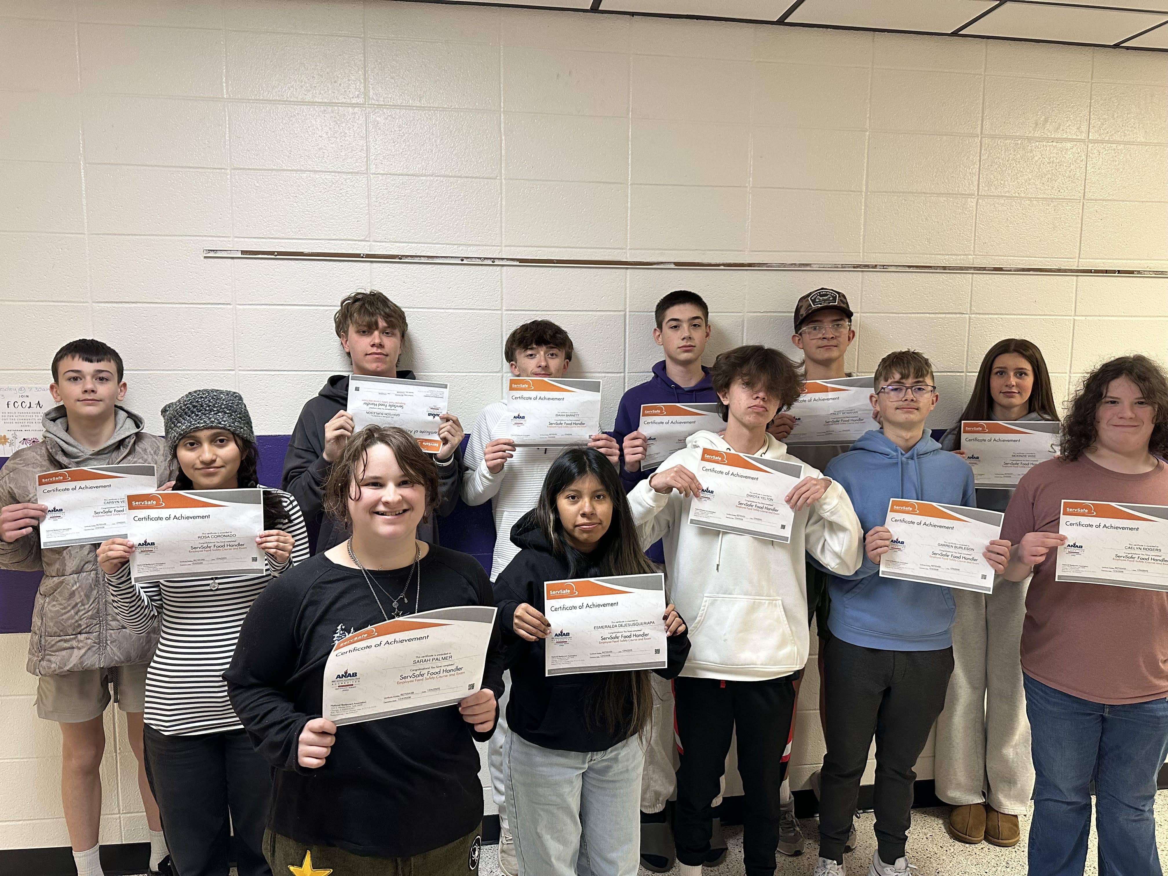Congratulations to the students in Ms. Peterson’s 3rd block Foods and Nutrition 1 class who obtained their ServSafe Food Handler Certification. This is a valuable certification for any student who plans on working in the food service industry. A ServSafe Food Handler certification shows that you understand basic food safety, sanitation, and proper kitchen practices. With it, you can work entry-level positions in restaurants, cafes, school cafeterias, catering, and other foodservice jobs. It helps employers trust that you know how to handle food safely and prevent foodborne illness.