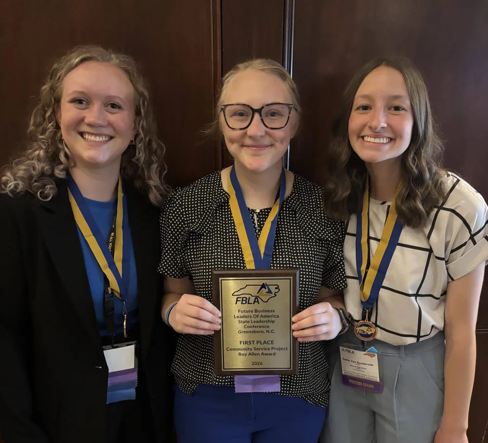 The Baptists on Mission: Building Mountaineers community service project focused on supporting recovery efforts following Hurricane Helene in Mitchell County. Partnering with Baptists on Mission at the newly-opened rebuild center, FBLA members provided humanitarian aid through volunteer labor, creation of a digital storytelling website, development of an inventory system for rebuilding supplies, and donation drives to assist families still struggling after the storm. This team will go on to compete at the national competition in San Antonio, Texas this summer.
