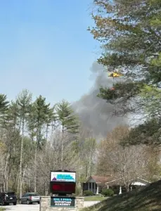 Firefighters are fighting a fast moving wildfire along 19E near the Avery and Mitchell County line, near the Avery County Airport. The fire was first reported early Wednesday afternoon (4/22/26). Traffic to Avery County was being detoured through Gouges Creek to Hanging Rock.