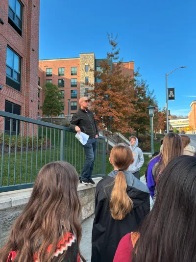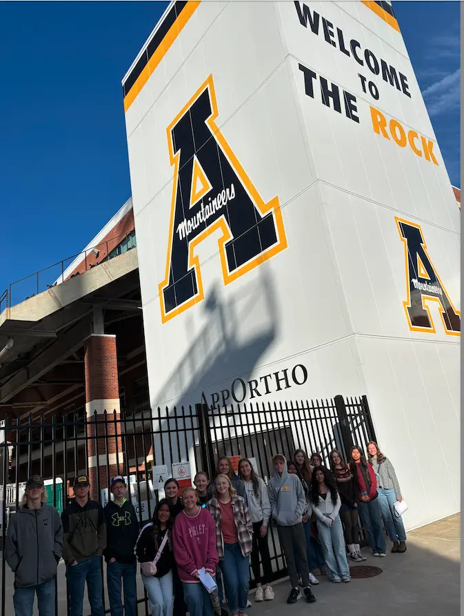 The MHS Future Business Leaders toured Appalachian State University on October 24th! Business teacher and ASU Alumni, Zack Snyder, led the tour, highlighting the Walker College of Business building, the renovated Wey Hall Art Department, and “The Rock” football stadium. Students were able to walk through the library, the Virtual Reality lab, shop at the college bookstore, and even visit with past MHS students! After the tour, students enjoyed lunch on King Street and experienced downtown Boone and its fall beauty. To end the day, Appalachia Cookie Company was visited and cookies were enjoyed before coming home.
